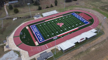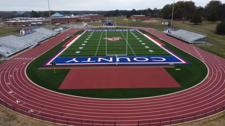 New Stadium, Turf Field, 8 Lane Track, LED Lights, fencing, and sidewalks